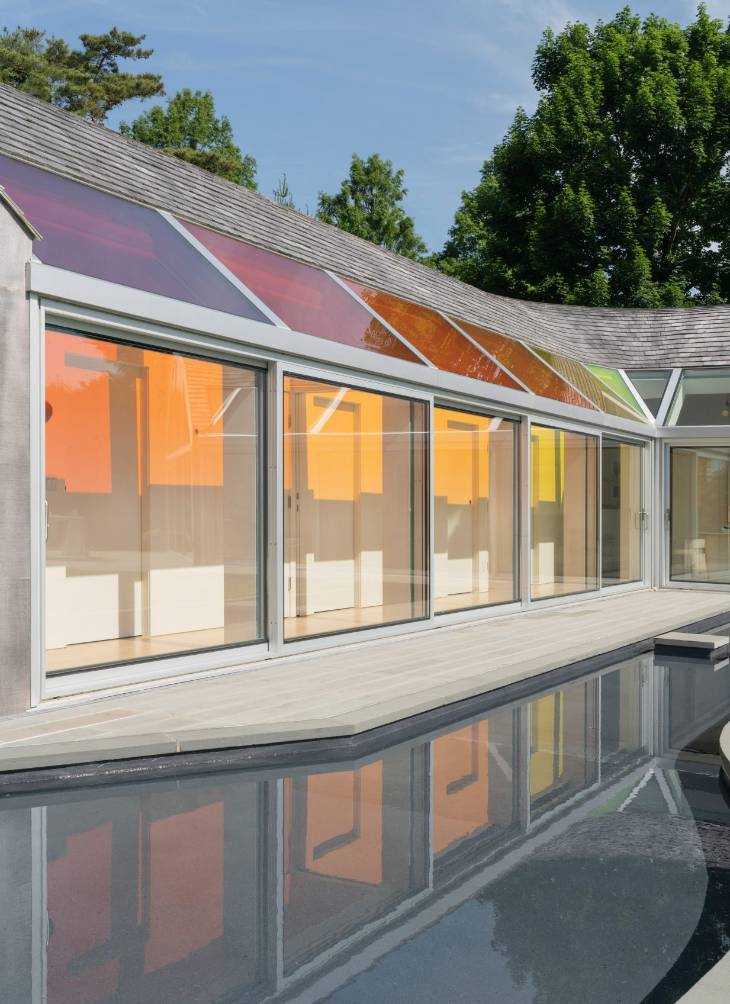 Skylights create rainbow patterns inside cedar-covered Cocoon House by Nina Edwards Anker